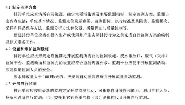 一是自行監(jiān)測(cè)的一般要求,即制定監(jiān)測(cè)方案、設(shè)置和維護(hù)監(jiān)測(cè)設(shè)施、開展自行監(jiān)測(cè)、做好監(jiān)測(cè)質(zhì)量保證與質(zhì)量控制、記錄保存和公開監(jiān)測(cè)數(shù)據(jù)的基本要求;