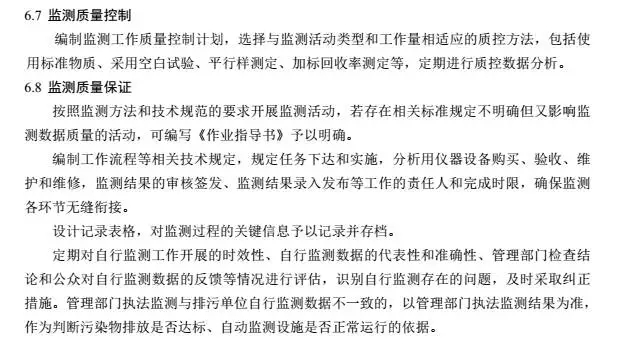 覆蓋全過程。按照排污單位開展監(jiān)測(cè)活動(dòng)的整個(gè)過程,從制定方案、設(shè)置和維護(hù)監(jiān)測(cè)設(shè)施、開展監(jiān)測(cè)、做好監(jiān)測(cè)質(zhì)量保證與質(zhì)量控制、記錄和保存監(jiān)測(cè)數(shù)據(jù)的全過程各環(huán)節(jié)進(jìn)行考慮。