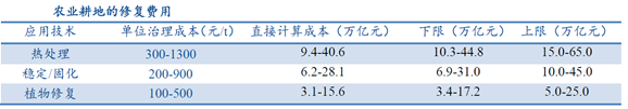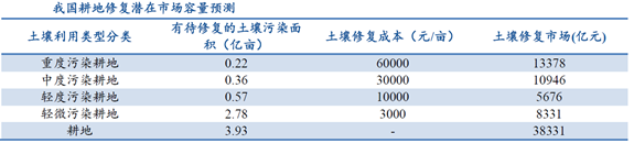對于耕地修復而言,由于耕地本身在修復后的升值空間不大,且一系列新興商業(yè)模式也各自存在問題,因此其修復的經濟可行性不強。該領域短期內的市場機會仍然在于政府對重點污染區(qū)域的投資。