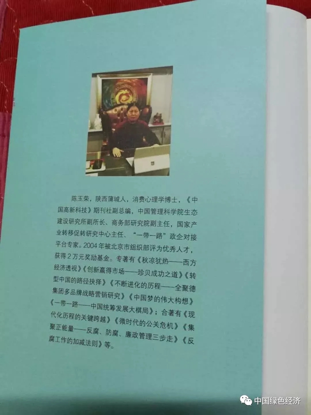 陳玉榮,消費(fèi)心理學(xué)博士、MBA工商管理碩士、經(jīng)濟(jì)學(xué)碩士,曾在原國家主席李先念同志秘書、國家統(tǒng)計(jì)局原局長李成瑞同志身邊從事過私人助理工作;在國家計(jì)委對(duì)外經(jīng)濟(jì)研究所、商務(wù)部國際經(jīng)濟(jì)貿(mào)易合作研究院、北京大學(xué)城市規(guī)劃研究所等從事過研究和頂層設(shè)計(jì)規(guī)劃等工作;在中國企業(yè)報(bào)、中國信息報(bào)和中國投資促進(jìn)雜志擔(dān)任過副主編工作;在著名民營企業(yè)匹夫品牌管理集團(tuán)、珍貝集團(tuán)、聯(lián)想集團(tuán)、國度投資集團(tuán)等從事總裁助理兼企劃部長工作等。2004年被北京市組織部評(píng)為優(yōu)秀人才稱號(hào)?,F(xiàn)任全國三農(nóng)調(diào)研中心副主任、國家產(chǎn)業(yè)轉(zhuǎn)移促進(jìn)中心高級(jí)顧問等。出版專著作品有《秋涼猶熱:西方經(jīng)濟(jì)透視》、《理想與改革:社會(huì)主義的改革歷程》、《不斷進(jìn)化的經(jīng)營:全聚德集團(tuán)多品牌戰(zhàn)略營銷》、《轉(zhuǎn)型中國的路徑抉擇》、《中國夢(mèng)的偉大構(gòu)想》、《一帶一路:中國統(tǒng)籌發(fā)展大棋局》、《藍(lán)色跨越:中國海洋強(qiáng)國的生態(tài)邏輯》等;出版合著作品有:《集聚正能量:反腐、防腐、廉政管理三步走》、《現(xiàn)代化進(jìn)程的跨越:貧富差距與犯罪率》、《微時(shí)代的危機(jī)公關(guān)》、《政府反腐工作的加減法則》等書,發(fā)表關(guān)于綠色經(jīng)濟(jì)、政治、貿(mào)易、投資、管理、營銷、戰(zhàn)略規(guī)劃等論文300多篇。新近出版的《一帶一路:中國統(tǒng)籌發(fā)展大棋局》一書被國家新聞出版署列入重大選題備案,歡迎關(guān)注。