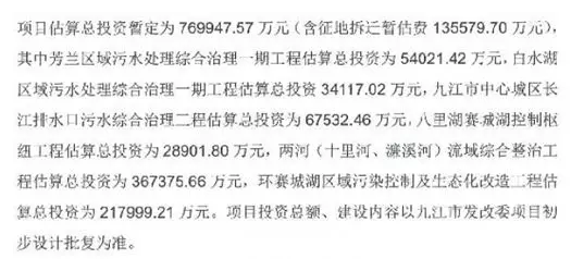 九江市中心城區(qū)水環(huán)境系統(tǒng)綜合治理一期項目總投資約77億元,采用PPP模式運作,合作期為20年,其中建設期2-3年,主要建設內容包括芳蘭區(qū)域污水處理綜合治理一期工程、九江市芳蘭污水處理廠一期配套管網(wǎng)項目工程、芳蘭污水處理廠一期項目尾水凈化工程等六大板塊。