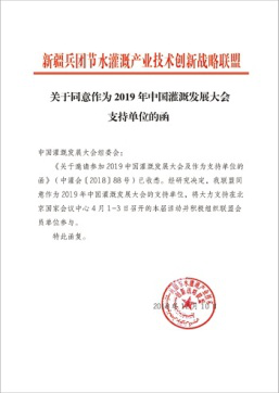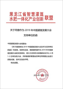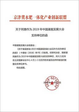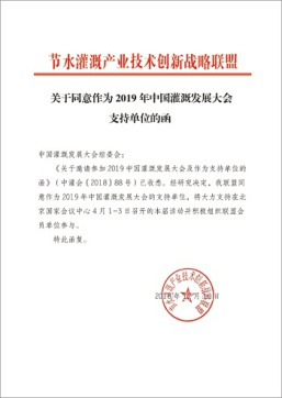 在2019年新年開篇之時,來自全國各節(jié)水灌溉聯(lián)盟及協(xié)會對中國灌溉發(fā)展大會的支持回函如雨后春筍般紛紛到達,本周之內(nèi),中國塑料加工工業(yè)協(xié)會塑料節(jié)水器材專業(yè)委員會、中國生態(tài)農(nóng)業(yè)產(chǎn)業(yè)技術創(chuàng)新戰(zhàn)略聯(lián)盟、節(jié)水灌溉產(chǎn)業(yè)技術創(chuàng)新戰(zhàn)略聯(lián)盟、新疆兵團節(jié)水灌溉產(chǎn)業(yè)技術創(chuàng)新戰(zhàn)略聯(lián)盟、京津冀水肥一體化產(chǎn)業(yè)創(chuàng)新聯(lián)盟、黑龍江省智慧灌溉水肥一體化產(chǎn)業(yè)創(chuàng)新聯(lián)盟紛紛致函組委會,表示將大力支持在北京國家會議中心4月1-3日召開的大會并積極組織相關會員單位參與同期活動。