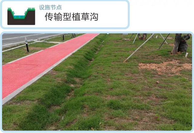 傳輸型植草溝是有植被的地表溝渠,可收集、調(diào)節(jié)、輸送和排放徑流雨水, 并具有一定的雨水凈化作用。