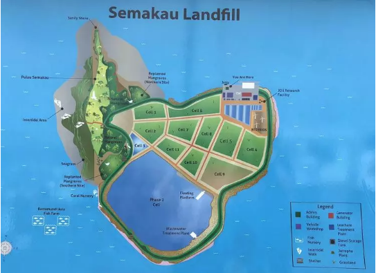 在新加坡的南部,有兩個(gè)小島 Pulau Sakeng(錫京島) 和 Pulau Semakau(實(shí)馬高島),它們之間圍成了一個(gè)占地 3.5 平方公里、容量 6300 萬立方米的垃圾填埋場(chǎng)——Semakau Landfill。