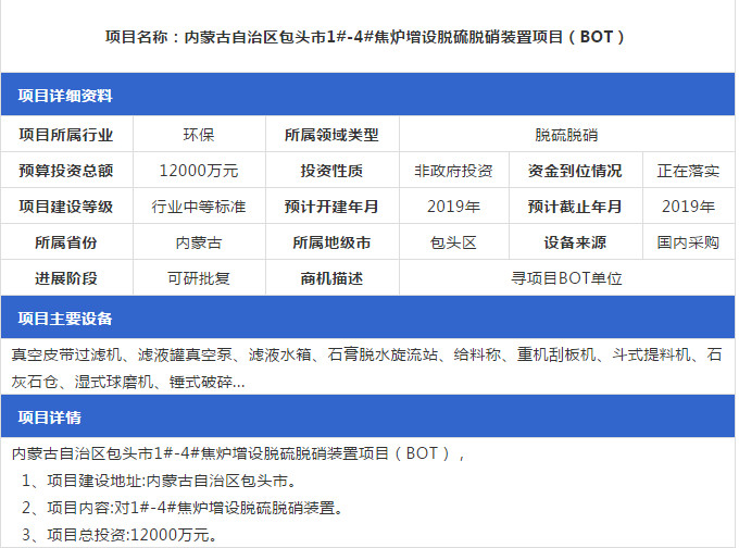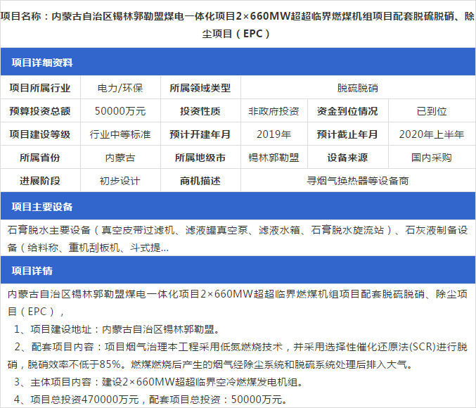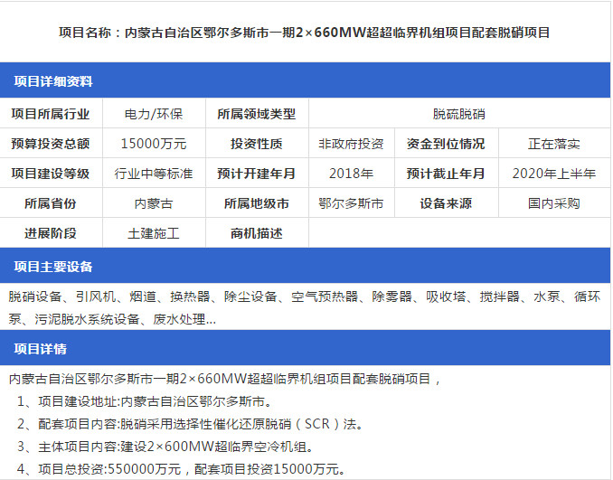 2019年1月份最新的全國(guó)脫硫脫硝工程項(xiàng)目匯總情況,包括SCR脫硝項(xiàng)目、SNCR脫硝項(xiàng)目等,詳情如下: