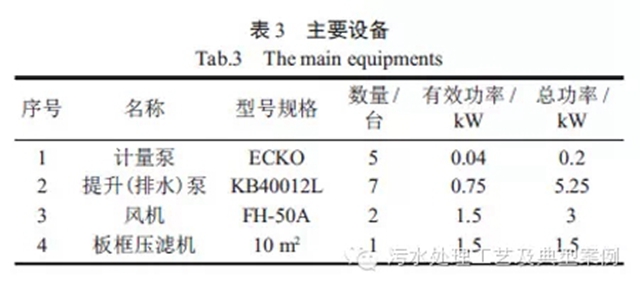 藥劑費(fèi):PAC,0.12 kg×1.8 元/kg =0.216 元/t;PAM,0.005 kg×24 元/kg=0.12 元/t;電費(fèi):裝機(jī)總?cè)萘考s為10 kW,實(shí)際運(yùn)行約為5 kW,5kW×[0.50 元/(kWh)]/(2 m3/h)=1.25 元;人工費(fèi),實(shí)際運(yùn)行時配備2 人(兼職),800 元×2 人/(30 d×20 t)=2.7 元/t。合計(jì)4.29 元/t。