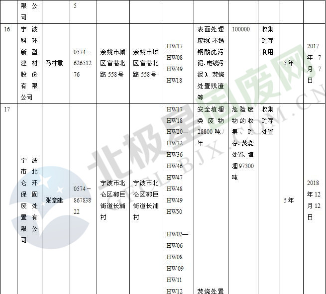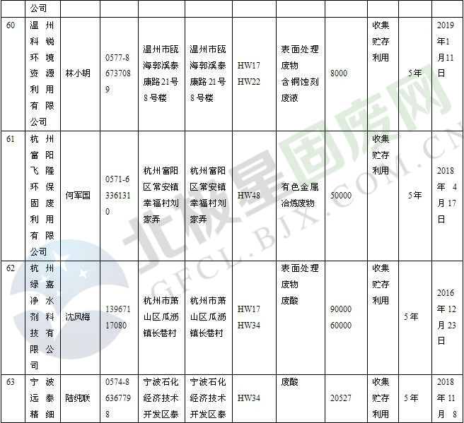 本文整理了浙江省截止至2019.1.22的危險(xiǎn)廢物經(jīng)營(yíng)單位,詳情如下: