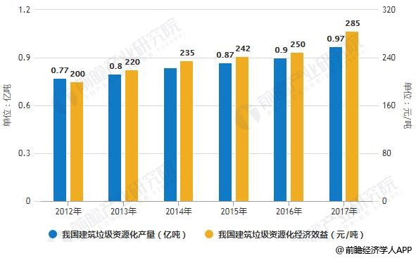 2012-2017年我國建筑垃圾資源化利用行業(yè)市場規(guī)模統(tǒng)計情況