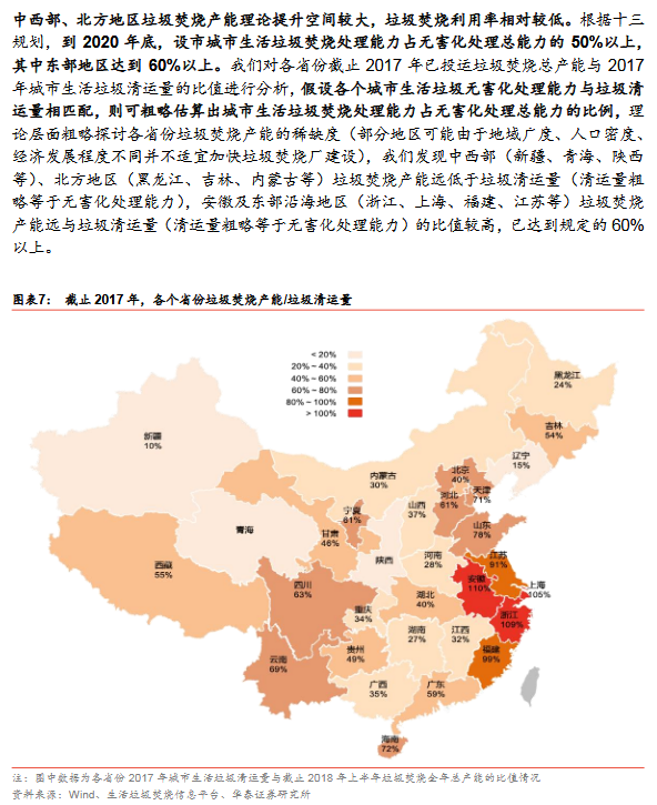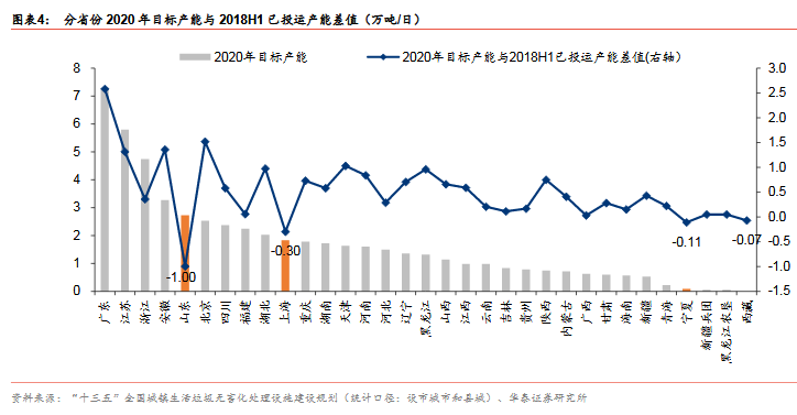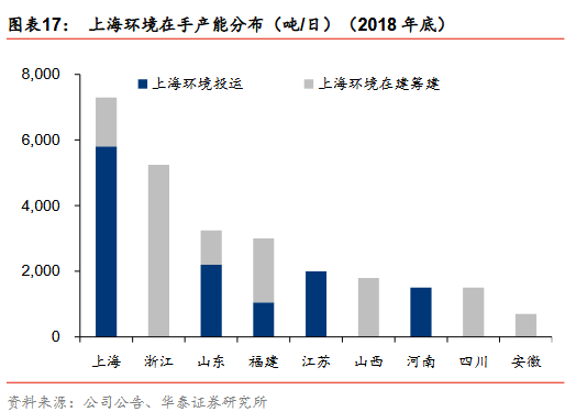 產(chǎn)能加速釋放:17年城市新增4.2萬噸/日(2012-2016年均新增3.2萬噸/日);17縣城投運(yùn)速度提速,我們估計(jì)17新增3.2萬噸/日(十二五年均新增0.4萬噸/日)。按照選取典型上市公司(18年已投運(yùn)產(chǎn)能市占率29%)投產(chǎn)規(guī)劃,18-20年累計(jì)投運(yùn)增速24%/24%/33% vs 按照十三五規(guī)劃測算18-20年累計(jì)投運(yùn)產(chǎn)能增速23%/19%/16%,上市公司投產(chǎn)增速高于行業(yè)增速,表明1)行業(yè)增速可能超預(yù)期或 ;2)上市公司已投運(yùn)市占率將提升。分區(qū)域:山東/上海/寧夏等省市提前完成十三五目標(biāo),廣東/北京/安徽/江蘇等19-20年仍具較大空間,中西部新增投運(yùn)崛起,東部部分地區(qū)仍有空間。