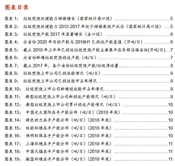競爭格局:集中度較高,國企競爭力增強(qiáng)根據(jù)2018年10月的垃圾焚燒項(xiàng)目在手規(guī)模排序,目前垃圾焚燒行業(yè)主要的參與者包括:1)國企:光大國際、中國環(huán)境保護(hù)集團(tuán)、綠色動(dòng)力環(huán)保、皖能環(huán)保、康恒環(huán)境、北京控股、重慶三峰、上海環(huán)境、啟迪桑德、廣州環(huán)保、瀚藍(lán)環(huán)境等;2)民企:錦江環(huán)境、盛運(yùn)環(huán)保、中國