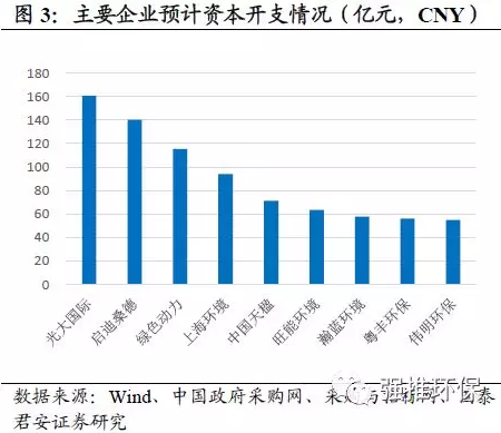 我們測(cè)算這9家公司項(xiàng)目全部落地需要超過800億資本開支。根據(jù)各公司在手項(xiàng)目平均噸投資及在手未投運(yùn)產(chǎn)能測(cè)算出各公司的預(yù)計(jì)資本開支情況。其中光大國際、啟迪桑德、綠色動(dòng)力、上海環(huán)境若目前在手所有項(xiàng)目都落地,預(yù)計(jì)資本開支都將大于100億元;而中國天楹、旺能環(huán)境、瀚藍(lán)環(huán)境、粵豐環(huán)保、偉明環(huán)保預(yù)計(jì)資本開支約在50-70億元之間。