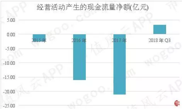 盛運(yùn)環(huán)保2015年至2018年前3季度,經(jīng)營(yíng)活動(dòng)產(chǎn)生的現(xiàn)金流量?jī)纛~分別為-2.51億元、-16.08億元、-21.14億元和3.34億元,累計(jì)金額為-36.39億元,換句話說(shuō),公司的經(jīng)營(yíng)活動(dòng)并沒(méi)有給公司帶來(lái)凈的現(xiàn)金流入,反而加大了公司的現(xiàn)金凈流出。