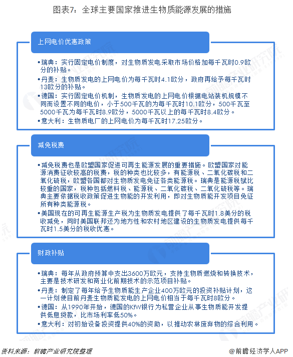 歐盟是當(dāng)前全球生產(chǎn)和消費(fèi)生物質(zhì)燃料最多的國家,美國排在全球第二位,但與歐盟在利用規(guī)模上仍存在較大差距。這兩大主體引領(lǐng)者全球生物質(zhì)能源的發(fā)展。對比各國的政策和法規(guī),上網(wǎng)電價(jià)優(yōu)惠、稅費(fèi)減免和財(cái)政補(bǔ)貼是最為常用的激勵(lì)性政策手段。