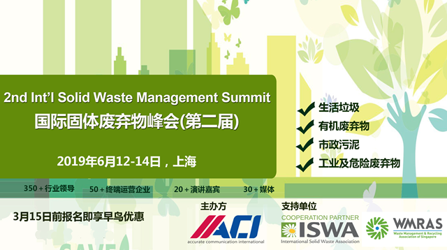為配合國家固廢管理工作,幫助國內(nèi)相關(guān)企業(yè)抓住中國固廢處理領(lǐng)域在“新常態(tài)”中的發(fā)展機遇,推動固廢處理、運營管理技術(shù)的創(chuàng)新與發(fā)展,促進(jìn)國內(nèi)外先進(jìn)企業(yè)在固廢處理技術(shù)、運營管理模式、設(shè)備創(chuàng)新方面的交流, 2019國際固體廢棄物峰會(第二屆)將于2019年6月12-14日在上海召開。