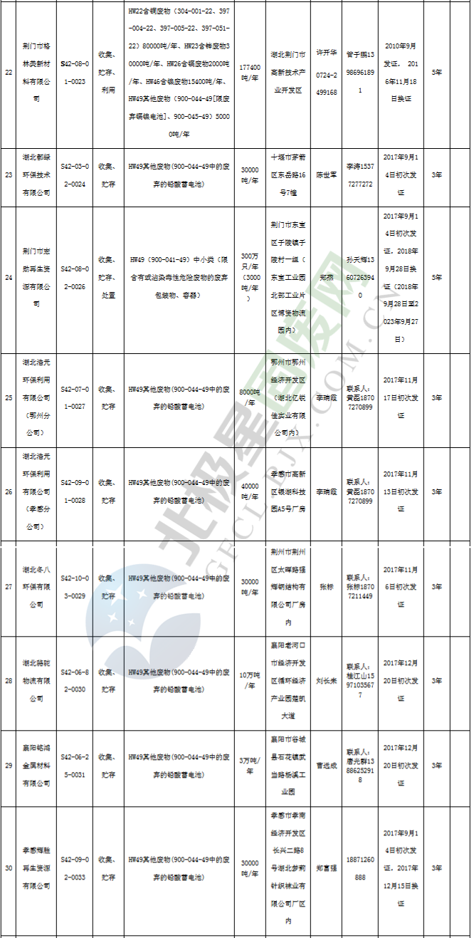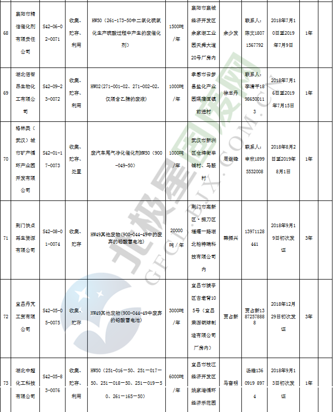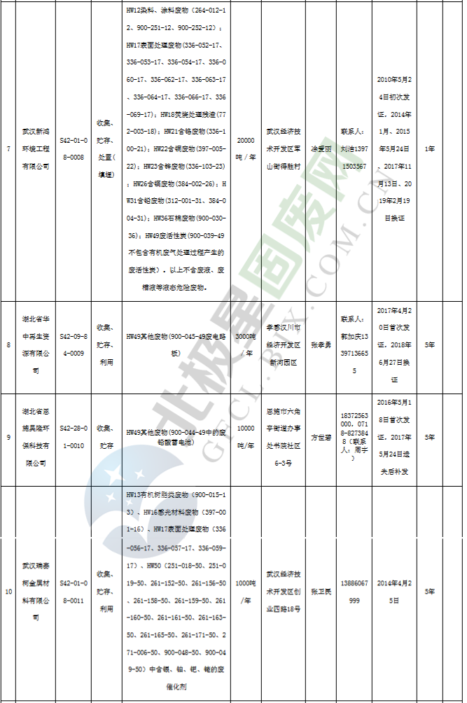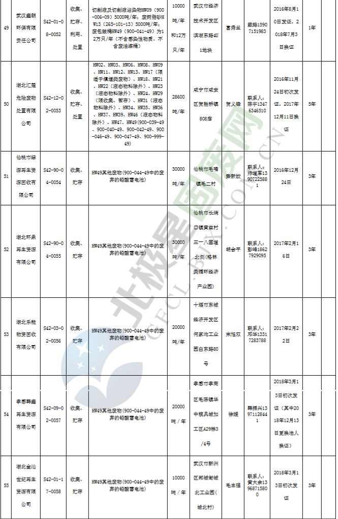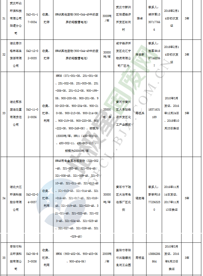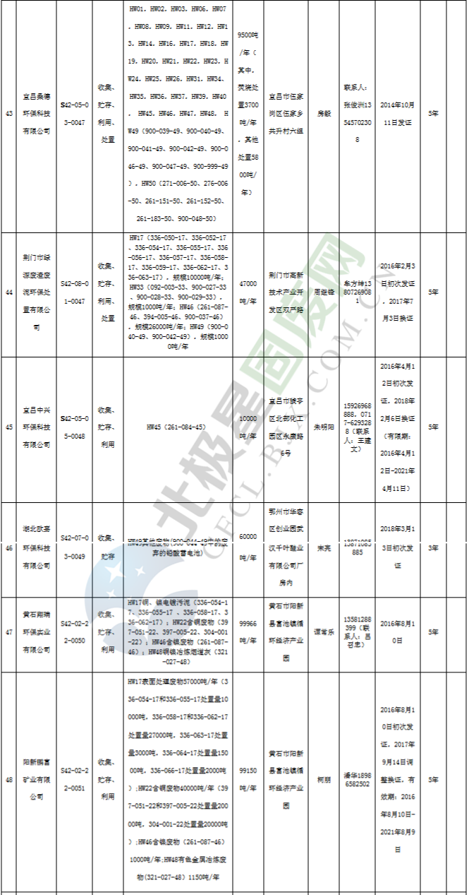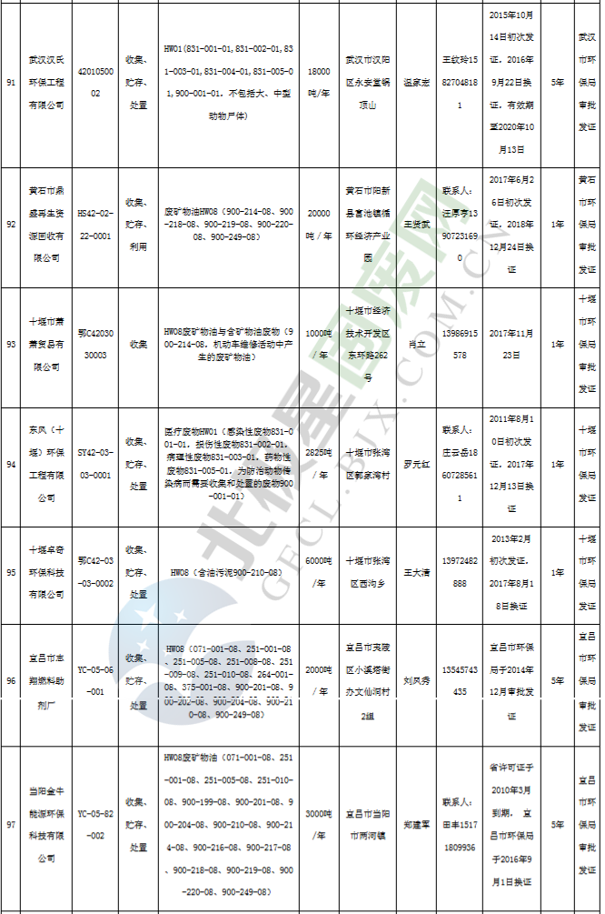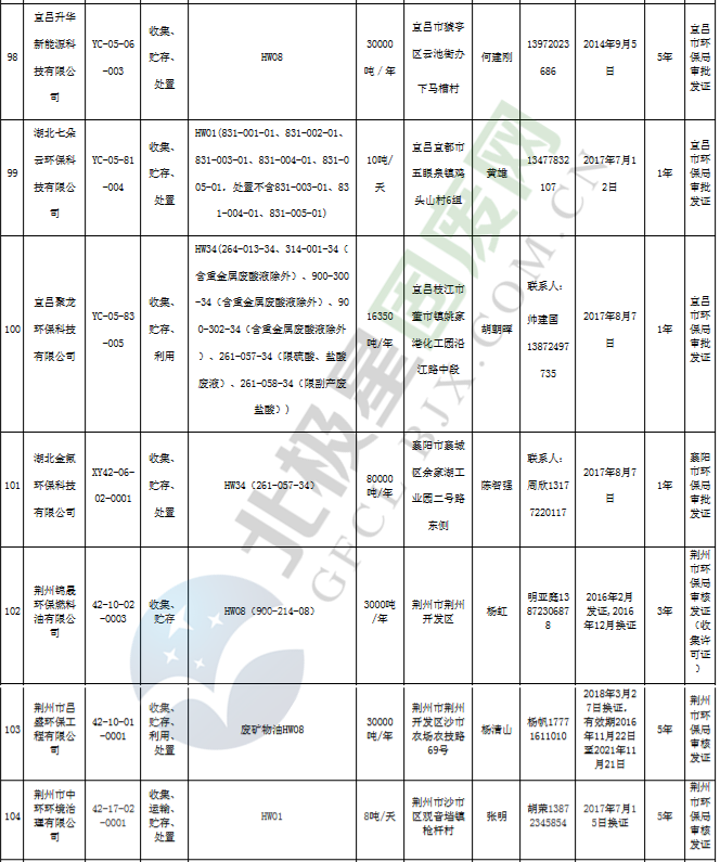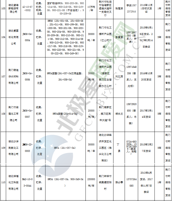 原標(biāo)題:《湖北省危險廢物經(jīng)營許可證》單位名錄(截至2019年2月19日,共125家)
