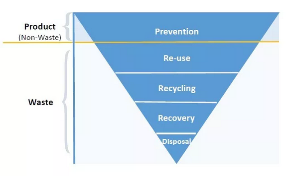 在固廢處理領(lǐng)域,最重要的法規(guī)是1975年頒布的廢棄物框架指令,該指令頒布以來,經(jīng)歷了1991年、2006年、2008年共3次修訂,明確了關(guān)于廢棄物處理的各種概念、定義,是歐盟在固廢處理領(lǐng)域最重要的法律之一。該指令提出了固廢處理金字塔(European Waste Hierarchy)的概念。固廢處理金字塔是歐盟提出的應(yīng)對廢棄物問題的處理原則,規(guī)定了各種方法的優(yōu)先級,體現(xiàn)了歐盟對于固廢處理的先進理念,歐盟各國也基本是在遵循此原則開展廢棄物處理工作。具體如下圖所示: