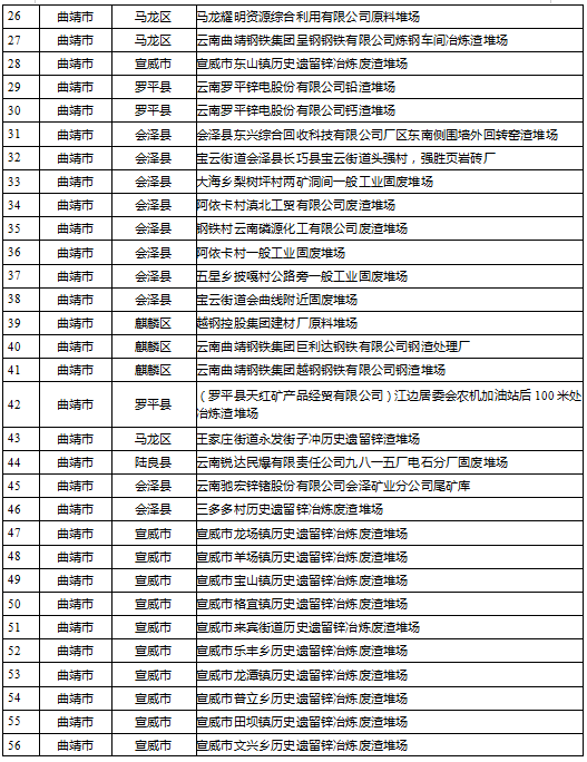 云南省工業(yè)固體廢物堆存場(chǎng)所環(huán)境整治清單(185個(gè))
