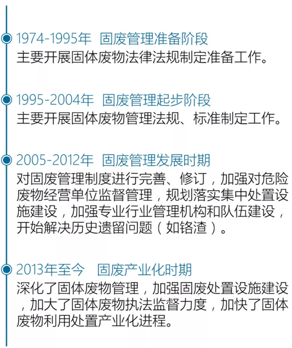 當(dāng)前國內(nèi)部分地區(qū)在城市規(guī)劃、產(chǎn)業(yè)布局、基礎(chǔ)設(shè)施建設(shè)方面,對于固體廢物減量、回收、利用與處置問題重視不夠、考慮不足,嚴(yán)重影響城市經(jīng)濟(jì)社會可持續(xù)發(fā)展[3]。 “無廢城市”建設(shè)的提出,有利于從城市整體層面繼續(xù)深化固廢管理制度改革,提升固體廢物綜合管理水平。自建國以來,我國固體廢物管理發(fā)展歷程主要分為以下四個時期[4]: