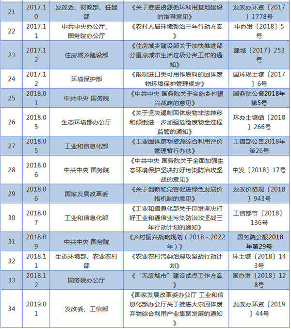 “十三五”以來,國家頻繁出臺相關(guān)政策為“無廢城市”的建設(shè)進(jìn)行鋪墊,這些政策對于“無廢城市”建設(shè)發(fā)展影響重大、指導(dǎo)意義深遠(yuǎn)。