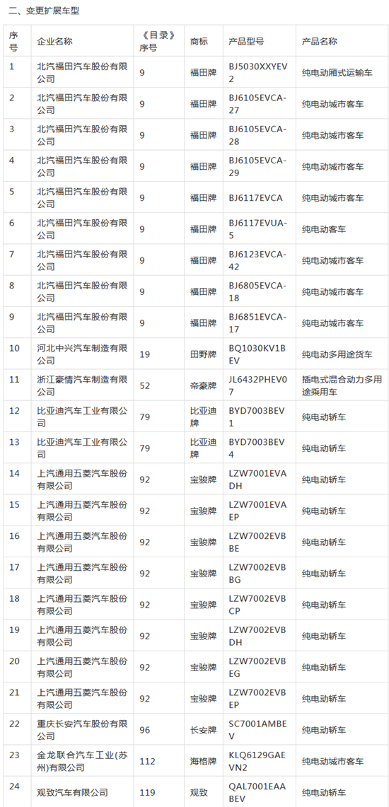 新能源汽車(chē)推廣應(yīng)用推薦車(chē)型目錄
