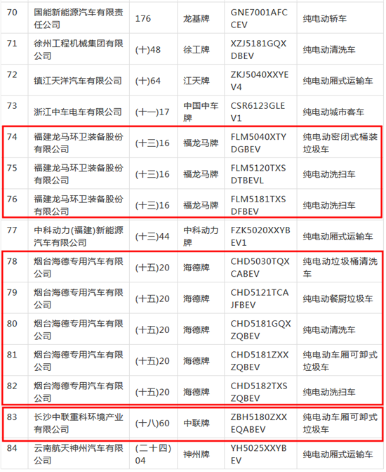 在目錄中,涉及多家環(huán)衛(wèi)裝備企業(yè)的環(huán)衛(wèi)車(chē),如中聯(lián)環(huán)境的純電動(dòng)車(chē)廂可卸式垃圾車(chē)等,煙臺(tái)海德的純電動(dòng)餐廚垃圾車(chē)、純電動(dòng)洗掃車(chē)等,龍馬環(huán)衛(wèi)的純電動(dòng)洗掃車(chē)等,宇通重工的純電動(dòng)洗掃車(chē)等。