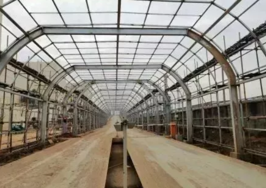 2、煙氣處理:灰渣輸送機安裝完成80%;屋面梁吊裝3榀;二期反應(yīng)塔錐體組拼完成;煙氣處理外保溫架體搭設(shè)完成;