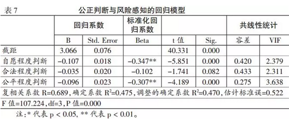 4. 公正判斷因素與風(fēng)險(xiǎn)感知的一般線性回歸