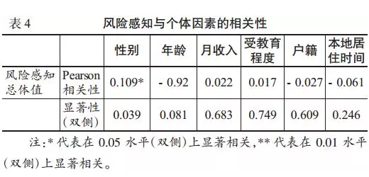 1.個(gè)體因素與風(fēng)險(xiǎn)感知的相關(guān)性分析