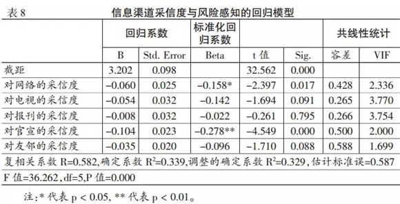 5. 信息渠道采信度與風(fēng)險(xiǎn)感知的一般線性回歸