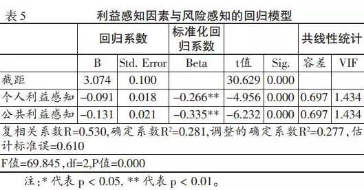 2. 利益感知因素與風(fēng)險(xiǎn)感知的一般線性回歸