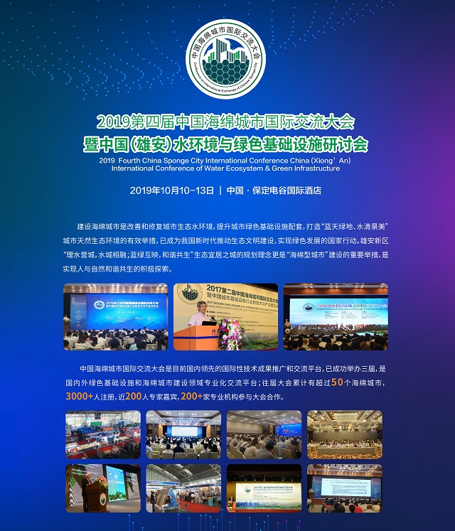 由全聯(lián)城市基礎設施商會舉辦的“2019第四屆海綿城市國際交流大會暨中國(雄安)水環(huán)境與綠色基礎設施發(fā)展研討會”將于10月10-13在保定市電谷國際酒店召開,屆時將邀請有關部門領導、國內外專家院士、有關企事業(yè)單位及媒體代表等出席大會,共同探討我國海綿城市建設、河湖治理及綠色基礎設施發(fā)展經(jīng)驗和問題。共享行業(yè)先進技術產(chǎn)品和理念模式,共謀城市生態(tài)綠色發(fā)展大計。