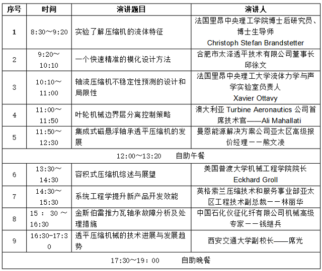 風(fēng)機、壓縮機分論壇日程安排10月17日 維景廳(7層)