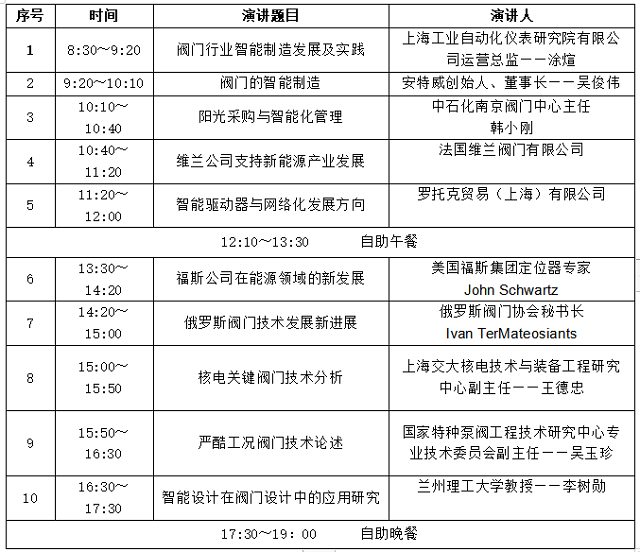 閥門分論壇日程安排 10月17日全天 漢諾威廳(4層)