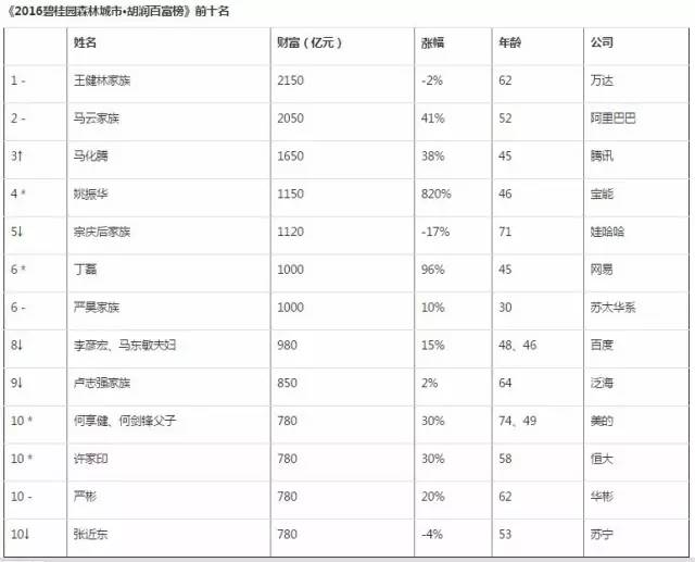 除上述企業(yè)家之外,還有幾家環(huán)保企業(yè)和跨界投資環(huán)保、涉及環(huán)保業(yè)務(wù)的企業(yè),其掌舵人入圍了《2016胡潤百富榜》500強,名單包括——