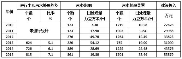 至2015年,全國仍有近90%的行政村未進行污水處理設(shè)施建設(shè),市場空間極大!