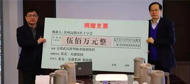 1月26日上午,位于蘇州高新區(qū)獅山橫塘街道企業(yè)萊克·尼盛集團,向蘇州高新區(qū)紅十字會捐贈500萬元,用于支援武漢新型冠狀病毒感染引發(fā)肺炎疫情的防控工作。