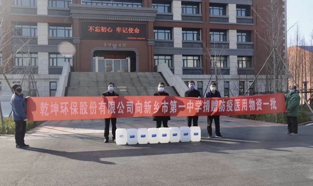 2月9日,乾坤環(huán)保股份有限公司向新鄉(xiāng)市第一中學(xué)捐贈(zèng)價(jià)值3360元防疫物資,據(jù)悉,此次捐贈(zèng)物資將用于新鄉(xiāng)市第一中學(xué)的疫情防控工作。