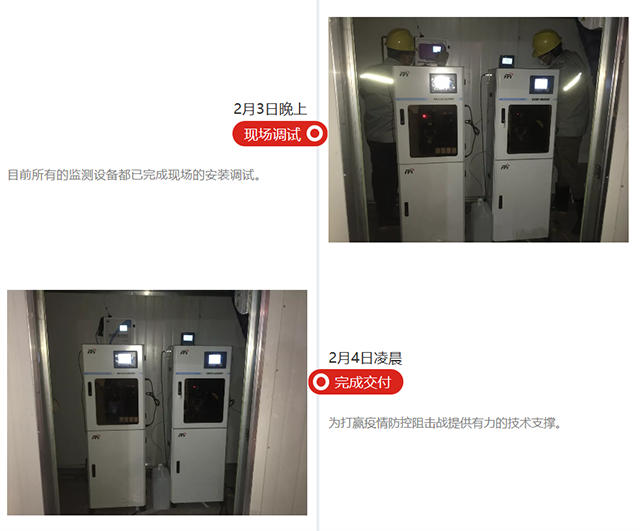 此次緊急馳援前方現(xiàn)場設(shè)備為公司助力武漢防疫定向捐贈,包括COD、氨氮、余氯等參數(shù)水質(zhì)在線監(jiān)測設(shè)備,2月2日水質(zhì)在線監(jiān)測設(shè)備均已完成現(xiàn)場安裝調(diào)試,截至2月5日所有監(jiān)測設(shè)備已全部投入正常運行。