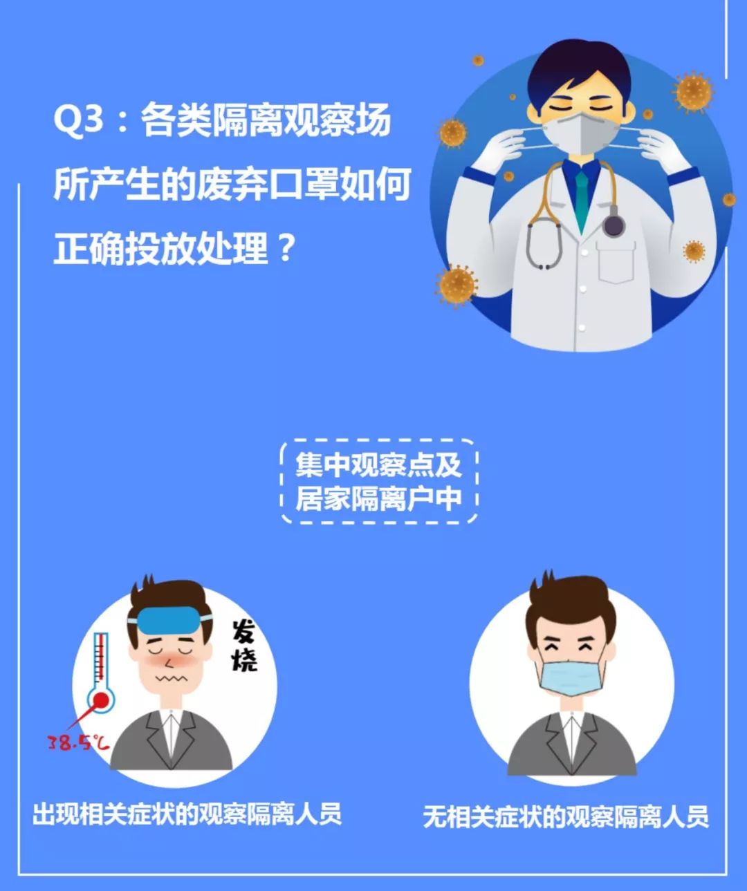 各居家隔離點(戶)、集中觀察點產(chǎn)生的廢棄口罩,應(yīng)嚴(yán)格按照上海市防控新型冠狀病毒感染肺炎疫情重點人員集中隔離觀察場所技術(shù)工作規(guī)范要求,由隔離牽頭部門負(fù)責(zé)指導(dǎo)屬地部門設(shè)立臨時存放點,與日常產(chǎn)生的生活垃圾予以專門存放。