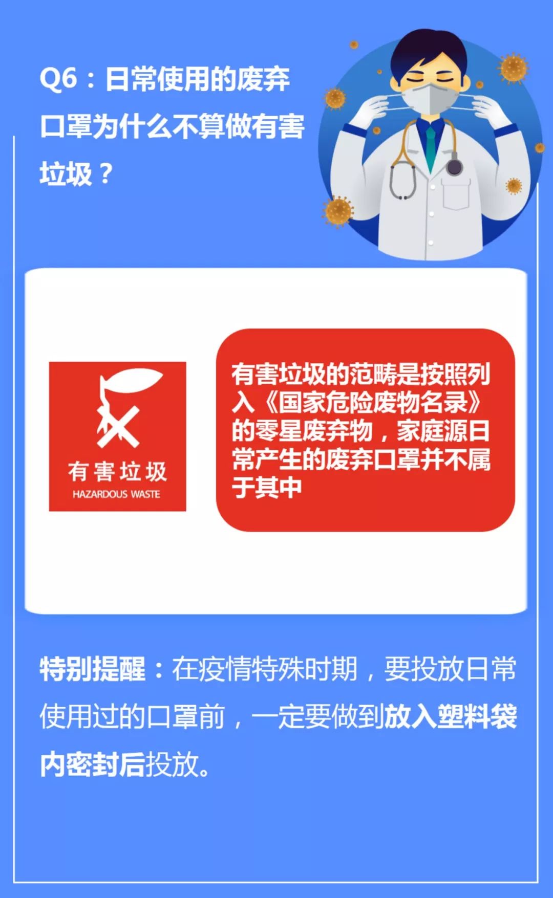 所以,為了減少作業(yè)人員和公眾的衛(wèi)生風(fēng)險,請將疫情期間日常產(chǎn)生廢棄的口罩使用塑料袋密封后,作為干垃圾進(jìn)行投放。