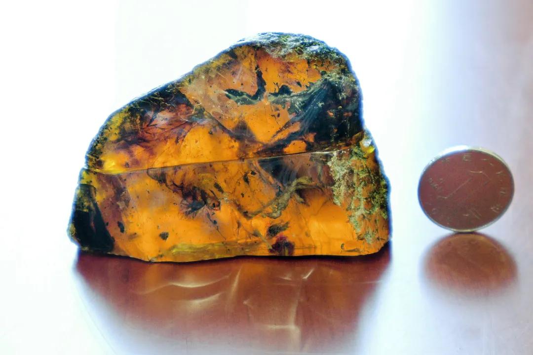 琥珀里的鳥(niǎo)化石,鳥(niǎo)足清晰可見(jiàn) | 琥珀是古代天然樹(shù)脂轉(zhuǎn)化形成的寶石。這塊琥珀標(biāo)本產(chǎn)自緬甸,形成于大約9900萬(wàn)年前的白堊紀(jì)中晚期,里面包裹著一只幾乎完整的雛鳥(niǎo),極為罕見(jiàn)。圖源@VCG