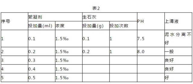 3月18日上午在專業(yè)人員的指導(dǎo)下,我們決定對(duì)2#氧化溝系列采用投生石灰和絮凝劑來(lái)控制氧化溝內(nèi)因污泥膨脹產(chǎn)生的褐色泡沫,投生石灰是為了殺死活性污泥中的絲狀菌(利用絲狀菌不能在堿性環(huán)境中生存的原理),投絮凝劑是為了增加活性污泥的沉降性能。首先做小試,確定生石灰和絮凝劑投加量,取2#氧化溝內(nèi)混合液1000ml,首加0.1g生石灰,測(cè)PH值為7.7,再加0.1g生石灰攪拌,測(cè)PH為8.03,小試后確定每升混合液中加0.2g生石灰,換算為每方0.2kg;然后向混合液中加1.5‰的絮凝劑從0.1ml開(kāi)始加至0.5ml時(shí),混合液的泥水分離較好,上清液變清亮,換算為每方混合液加1.5‰的絮凝劑0.5 kg。