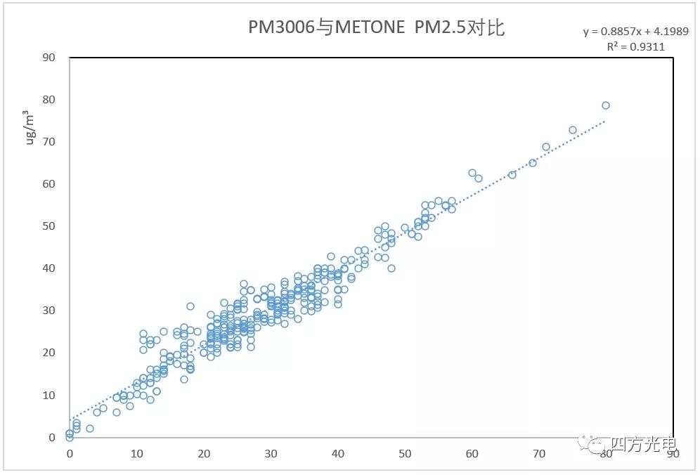 我國(guó)室外揚(yáng)塵網(wǎng)格化監(jiān)測(cè)經(jīng)歷了早期的β射線吸收法,到采用民用凈化器大量應(yīng)用的激光粉塵傳感器的過(guò)程。在使用過(guò)程中發(fā)現(xiàn),民用的激光粉塵傳感器不僅不能滿(mǎn)足-30——70℃室外環(huán)境溫度的全天候使用要求,同時(shí)還必須面對(duì)監(jiān)測(cè)場(chǎng)所,特別是建設(shè)工地經(jīng)常噴灑降霾的水霧影響,或者下雨潮濕的氣候環(huán)境等。這種環(huán)境下,水霧經(jīng)常被判斷為嚴(yán)重霧霾造成爆表。同時(shí)網(wǎng)格化室外粉塵監(jiān)控希望得到局部的可以與國(guó)家大氣環(huán)境監(jiān)測(cè)網(wǎng)數(shù)據(jù)具備的PM2.5/PM10/TSP的多項(xiàng)參數(shù)對(duì)比, 民用激光傳感器由于激光功率小,采樣流量小, PM10分辨率很低,無(wú)法提供準(zhǔn)確的PM10, 通常采用根據(jù)PM2.5的數(shù)字進(jìn)行比例計(jì)算,造成PM10監(jiān)測(cè)數(shù)據(jù)失真。四方光電研制的PM3003X、 PM3006激光揚(yáng)塵傳感器通過(guò)采用寬溫型大功率線型激光光源、API粉塵自動(dòng)識(shí)別技術(shù)、先進(jìn)的流道設(shè)計(jì)實(shí)現(xiàn)抗污染、大流量車(chē)規(guī)級(jí)采樣機(jī)構(gòu)、高濕度環(huán)境的水霧去除裝置等,低成本地實(shí)現(xiàn)了對(duì)室外揚(yáng)塵粉塵與β射線吸收法達(dá)到0.9相關(guān)系數(shù)的高精度測(cè)量。