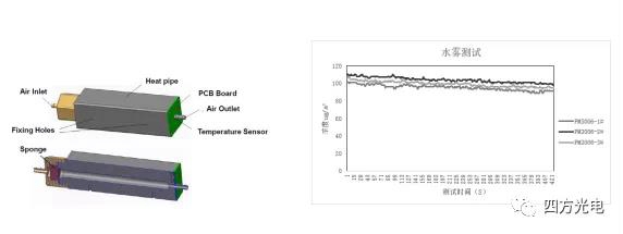 四方光電研制的PM3003X、 PM3006激光揚(yáng)塵傳感器前端配套了除濕裝置,防止室外環(huán)境中細(xì)小的水珠進(jìn)入檢測(cè)氣室,消除水汽對(duì)揚(yáng)塵傳感器的精度影響。
