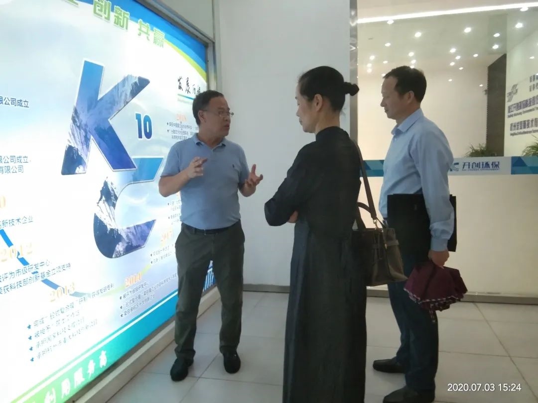 2020年7月3日下午,省科技廳社發(fā)處處長曹華芬、副處長金宏偉、浙江大學(xué)水環(huán)境研究院院長徐向陽一行蒞臨浙江開創(chuàng)環(huán)??萍脊煞萦邢薰?/span>調(diào)研科技創(chuàng)新工作,對我司承擔(dān)的重點(diǎn)研發(fā)項(xiàng)目實(shí)施情況進(jìn)行指導(dǎo)。開創(chuàng)環(huán)保研究院院長謝柏明、執(zhí)行副院長沈紅梅陪同。