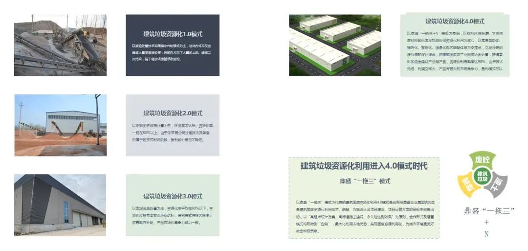 簡而言之,鄭州鼎盛公司提出的建筑垃圾資源化4.0核心點就是“一拖三+N”模式+工業(yè)固廢協(xié)同資源化利用。