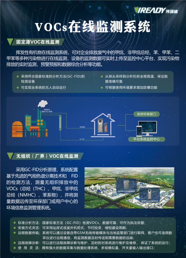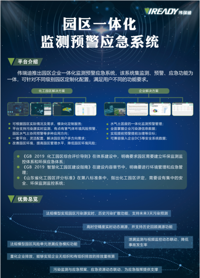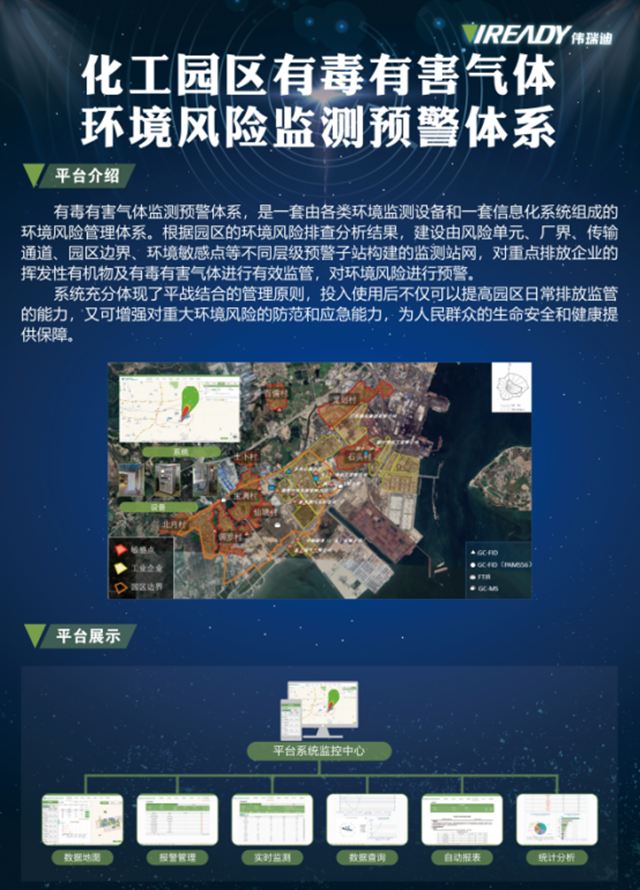 特別是在生態(tài)環(huán)境部發(fā)布的《2020年揮發(fā)性有機(jī)物治理攻堅方案》的要求下,偉瑞迪提出的VOCs在線監(jiān)測與環(huán)境風(fēng)險預(yù)警一體化解決方案不僅貼合實際需求,對有組織排放和無組織排放多方位有效監(jiān)管,而且能夠解決園區(qū)污染種類多、環(huán)境敏感點多、環(huán)境風(fēng)險壓力大的問題。