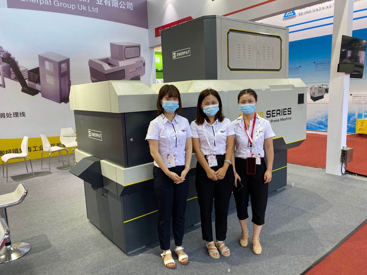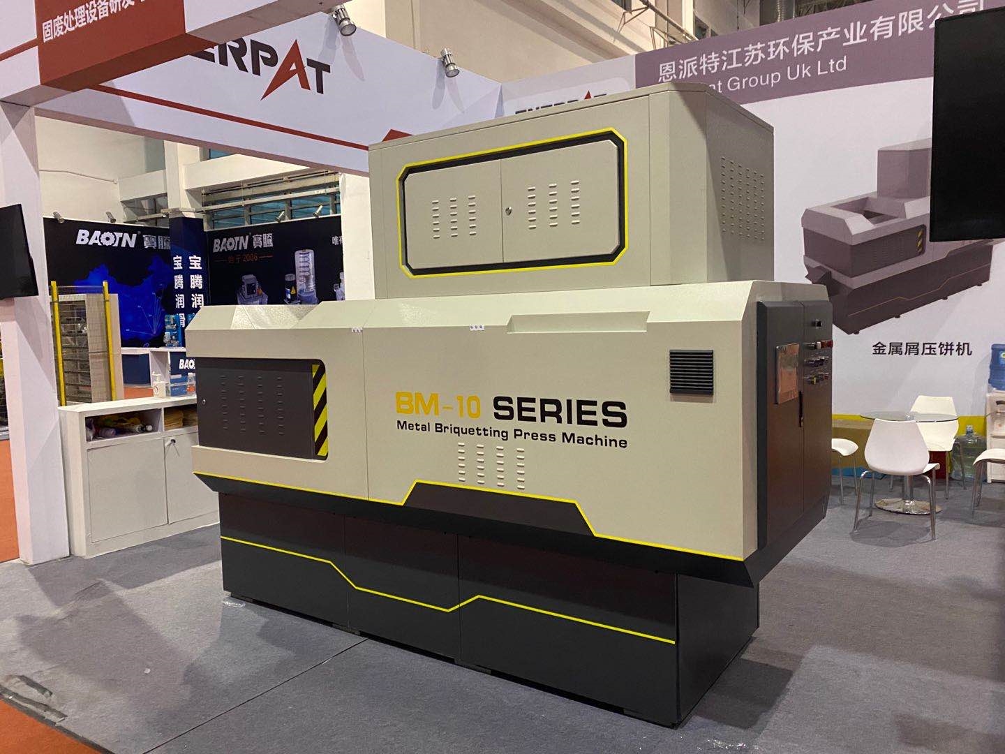 作為此次參展產(chǎn)品的重頭戲,BM系列全自動金屬屑壓餅機可謂“內(nèi)外兼修”,不僅擁有美觀、人性化的設(shè)計,而且設(shè)備升級了智能化功能、新穎的雙絞龍送料結(jié)構(gòu)、獨特的壓縮裝置、便捷的維護設(shè)計,保障了壓餅機的大壓縮比、高壓縮效率、較好的物料壓縮效果,恩派特全自動金屬屑壓餅機可以廣泛用于鐵屑、銅屑、鋼屑、鋁屑、合金鋼屑等壓餅處置,成功解決了車間金屬切屑難收集,切屑液滴漏的難題!展會現(xiàn)場,這臺金屬屑壓餅機經(jīng)常被現(xiàn)場觀眾圍在中間,客戶圍繞設(shè)備的功能、質(zhì)量進行溝通交流。