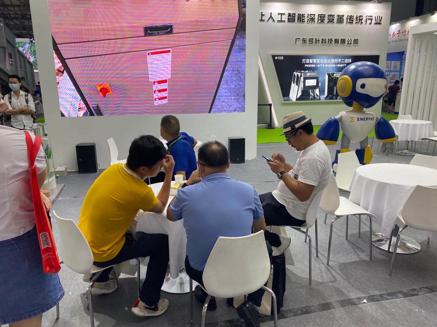 展會現(xiàn)場視頻展示中心通過三維動畫、車間實景、設(shè)備工作現(xiàn)場等多角度展示恩派特公司實力及固廢處置方案。這種直觀生動的展示方式吸引了大量參觀者駐足觀看,幫助了大家更深刻的了解到恩派特的產(chǎn)品優(yōu)勢,對智能化也有了更直觀的體驗。