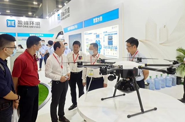 盈峰環(huán)境執(zhí)行副總裁蘭東洋向廣東省生態(tài)環(huán)境廳副廳長(zhǎng)陳金鑾詳細(xì)介紹無人機(jī)環(huán)境監(jiān)測(cè)系統(tǒng)